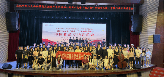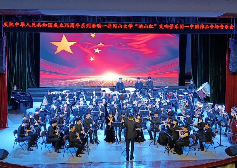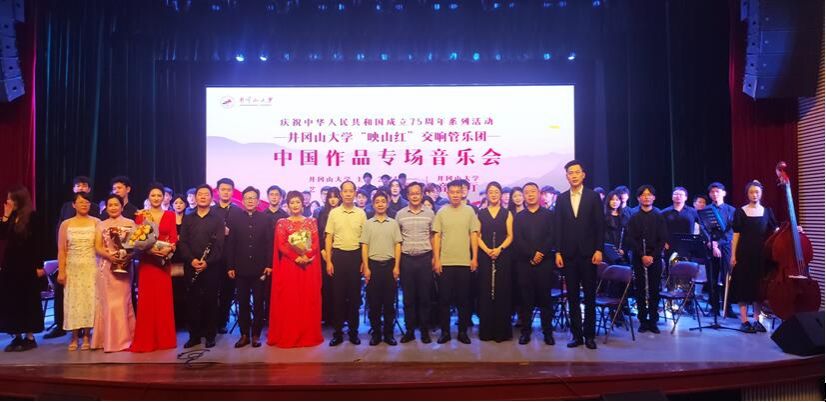 6月19日,为全面深入学习贯彻习近平文化思想,庆祝中华人民共和国成立75周年,由艺术学院主办、音乐系学生第一党支部承办的井冈山大学“映山红”交响管乐团中国作品专场音乐会成功举行。校党委常委、纪委书记彭西洪,艺术学院领导及师生350余人现场欣赏音乐会。