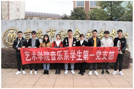 3月14日上午,艺术学院音乐系学生第一党支部赴吉安市社会福利中心进行“贯彻十九大,温暖你我他”党支部活动,艺术学院音乐系学生第一党支部副书记陈美丽、支部委员苟磊磊以及音乐系学生第一党支部成员共9人参加此次活动。