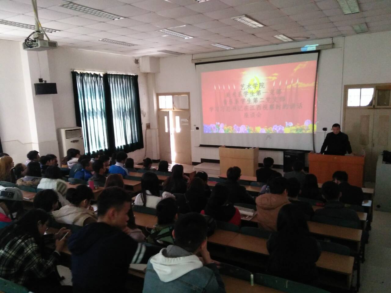 3月25日下午,艺术学院美术系学生第一党支部、音乐系第二党支部召开全体党员以及积极分子会议,传达学习贯彻习近平总书记视察江西重要讲话精神。并作交流发言。