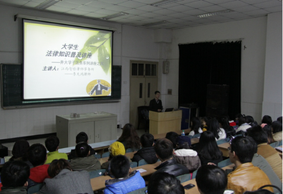 为进一步普及法律知识,增强同学们的法律意识,提高其法律素质,2013年12月16日晚上七点艺术学院于在音乐多媒体开展了大学生法律知识普及讲坐。我院邀请到江西智桥律师务所的李天鸿律师为同学们主讲。讲座由我院团委书记邵璐主持。
