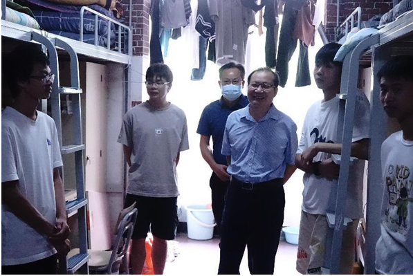 黄俭根向同学们说明了目前的防疫形势和实时管控情况,详细询问学生日常生活、线上学习、核酸检测、课余锻炼等情况,提醒同学想注意寝室卫生和通风。同学们表示积极配合学校疫情防控工作,合理分配好时间认真学习、加强锻炼。