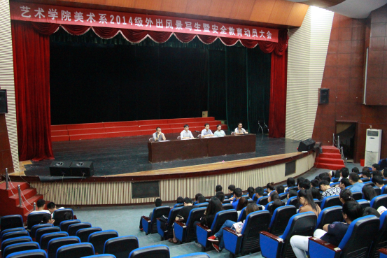 2015年9月30日上午,艺术学院在音乐厅召开美术系2014级外出风景写生及安全教育动员大会。艺术学院副院长康煜,党委副书记王志民,美术系教师肖鹤飞、曾军宏及2014级美术系全体学生参加了此次大会。本次会议由教务科科长朱仪主持。
