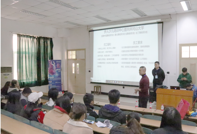为了更好的解决大学生就业难题,缓解大学生毕业压力。11月18日上午,艺术学院于8栋美术多媒体教室学举办张家港杨舍西城伊人少儿舞蹈培训中心专场招聘会。艺术学院党委书记杨芳、团委副书记、学生科副科长陈美丽以及舞蹈表演毕业生共计60余人。