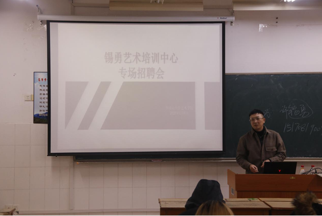 为了帮助用人单位人才选拔,提高我院毕业生积极就业意识,1月6日下午,锡勇艺术培训中心在8栋艺术学院教室c303举办专场招聘会,参加此次招聘会的有17届学生舞蹈1、2班的学生60余人。