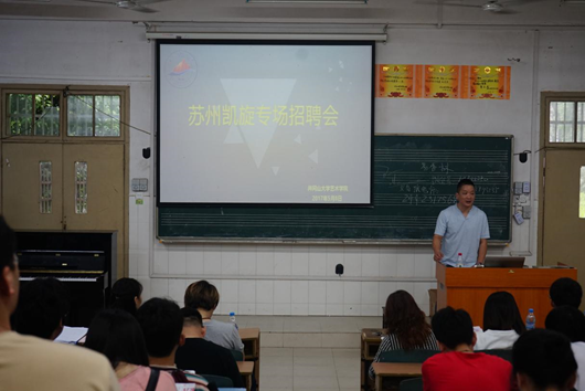 5月7日,艺术学院于八栋D105教室举办苏州凯旋健身有限公司专场招聘会。艺术学院党委书记杨芳及2017届舞蹈、音乐专业学生一同参加此次招聘会。