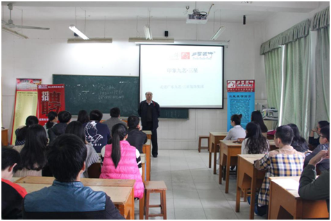 2016年11月14日,艺术学院于八栋美术多媒体教室举行广东省广州市九艺·三星装饰集团进行专场招聘会。艺术学院学生科叶茜茜老师及2017届毕业生一同参加此次招聘会。在招聘会现场,叶老师热情欢迎九艺·三星装饰集团各分公司的老总来校开展专场招聘会,并专注聆听了招聘单位的宣讲。九艺·三星装饰集团向同学们详细介绍了公司的概况、职业发展方向、人员需求等,在现场与同学们交流工作心得,积极鼓励视觉传达设计专业的学生来本单位实习与就业。