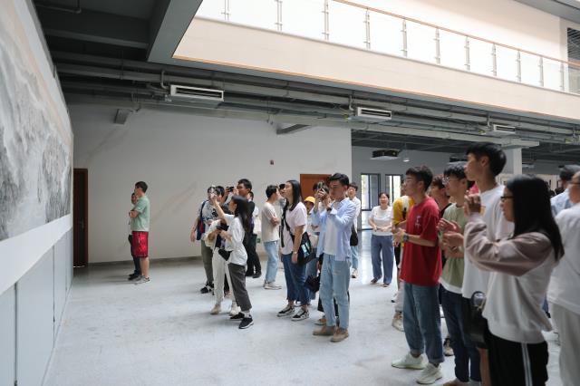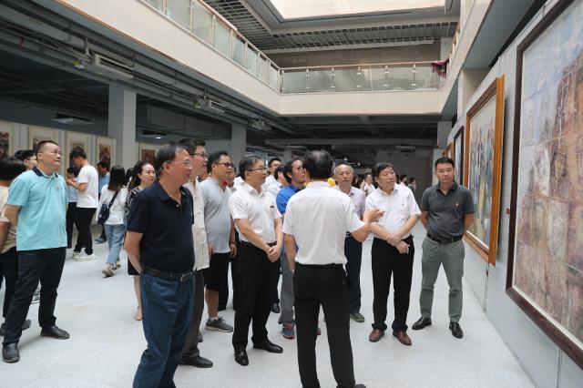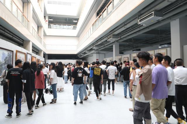 开展仪式后,校领导和数百名师生步入新图书馆西附楼一楼展厅参观画展。