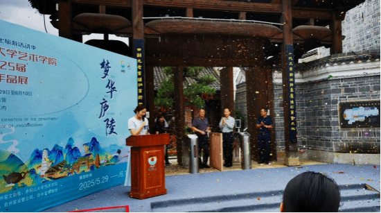 为推进校地合作,推进产学研合作,5月29 日,“梦华庐陵”——井冈山大学艺术学院美术系2025届毕业设计作品展在吉州窑景区周必大纪念馆隆重开幕。艺术学院院领导、吉州窑管委会领导,以及艺术学院相关专业师生参加开幕式。